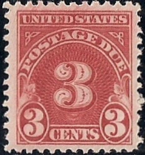 J72 3 cent Carmine, Flat Press, Perforated 11, Postage Due Stamps(1930) Stamp mint OG NH VF-XF deep rich color very nice stamp.
