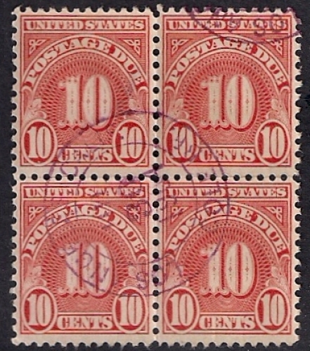 J84 10 cent Carmine, Rotary Press, Perforated 11x101/2 & 101/2x11, Postage Due Stamps(1931) Stamp VF used deep rich color very nice stamp Dry Printing Block nice cancel .