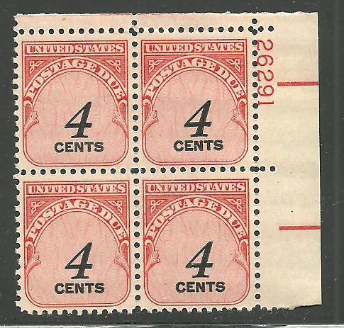 #J92 4c Postage Due Plate Block Mint Never Hinged #26291