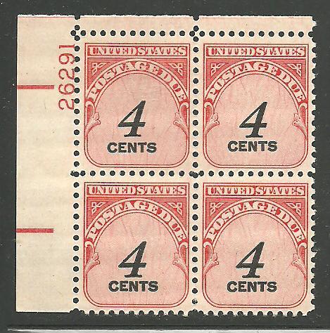 #J92 4c Postage Due Plate Block Mint Never Hinged #26291