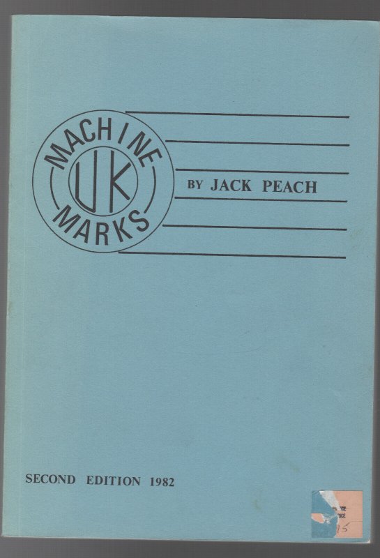 UK MACHINE MARKS JACK PEACHVera Trinder trade paperback1982 2nd edition 283 pages including bibliography Illustraded. Very Good spine tannedAn illustratedl ist of marks made by rapid cancelling machines with a guide to valuation. Includes Pearson Hill, packet cancelling, and Hoster machines We prefer Paypal which is fast, secure and free to the buyer. We will combine shipping on multiple purchases. Email for further information. International bidders welcome! Internationales Bewerber Willkommen! Les sousmissionaires internationales sont bienvenues! Recepción Internacional De los Licitadores! BRITISH, AUSTRALIAN AND OTHER OVERSEAS: Shipping anywhere in the world by Air Mail International. And again Paypal . Import duties, taxes and charges are not included in the item price or shipping charges. These charges are the buyer's responsibility. Please check with your country's customs office to determine what these additional costs will be prior to bidding/buying.Hip Store