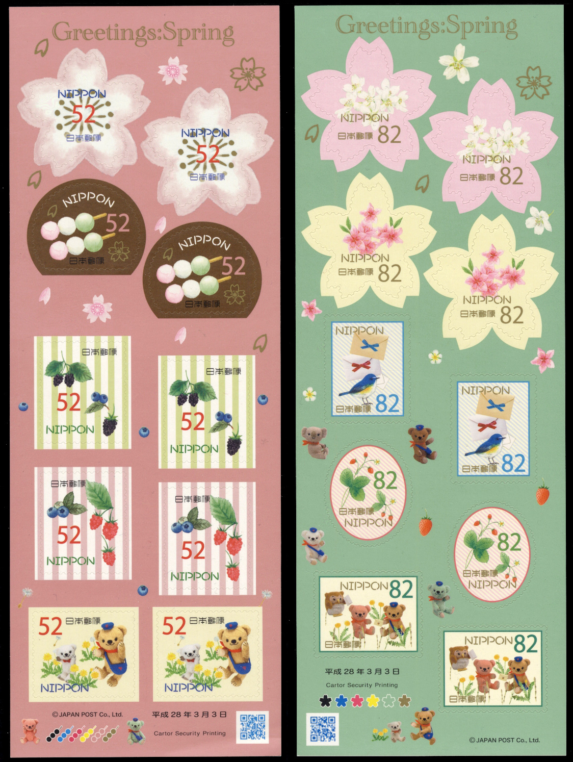 Japan 2016 Scott #3978-3979 Sheets Mint Never Hinged