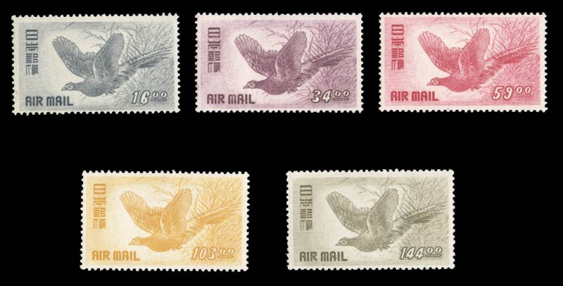 Japan #C9-13 Cat$125, 1950 Pheasant, complete set, lightly hinged