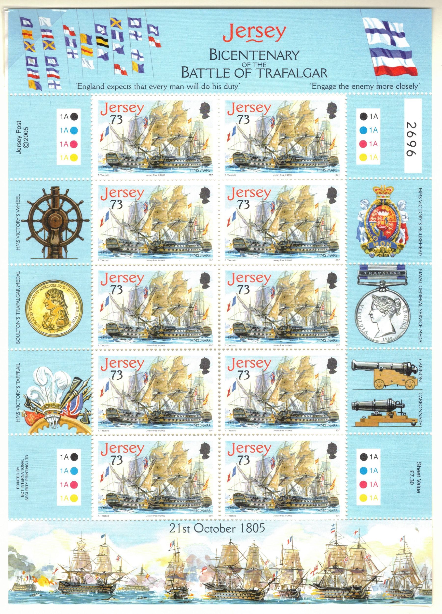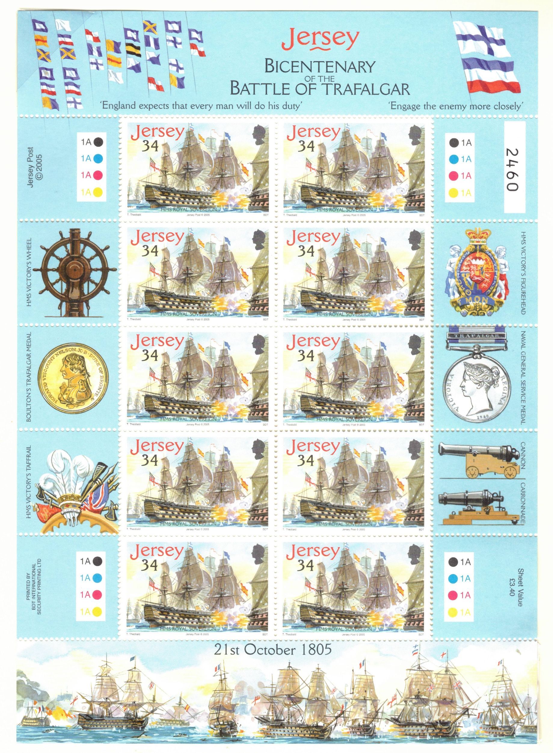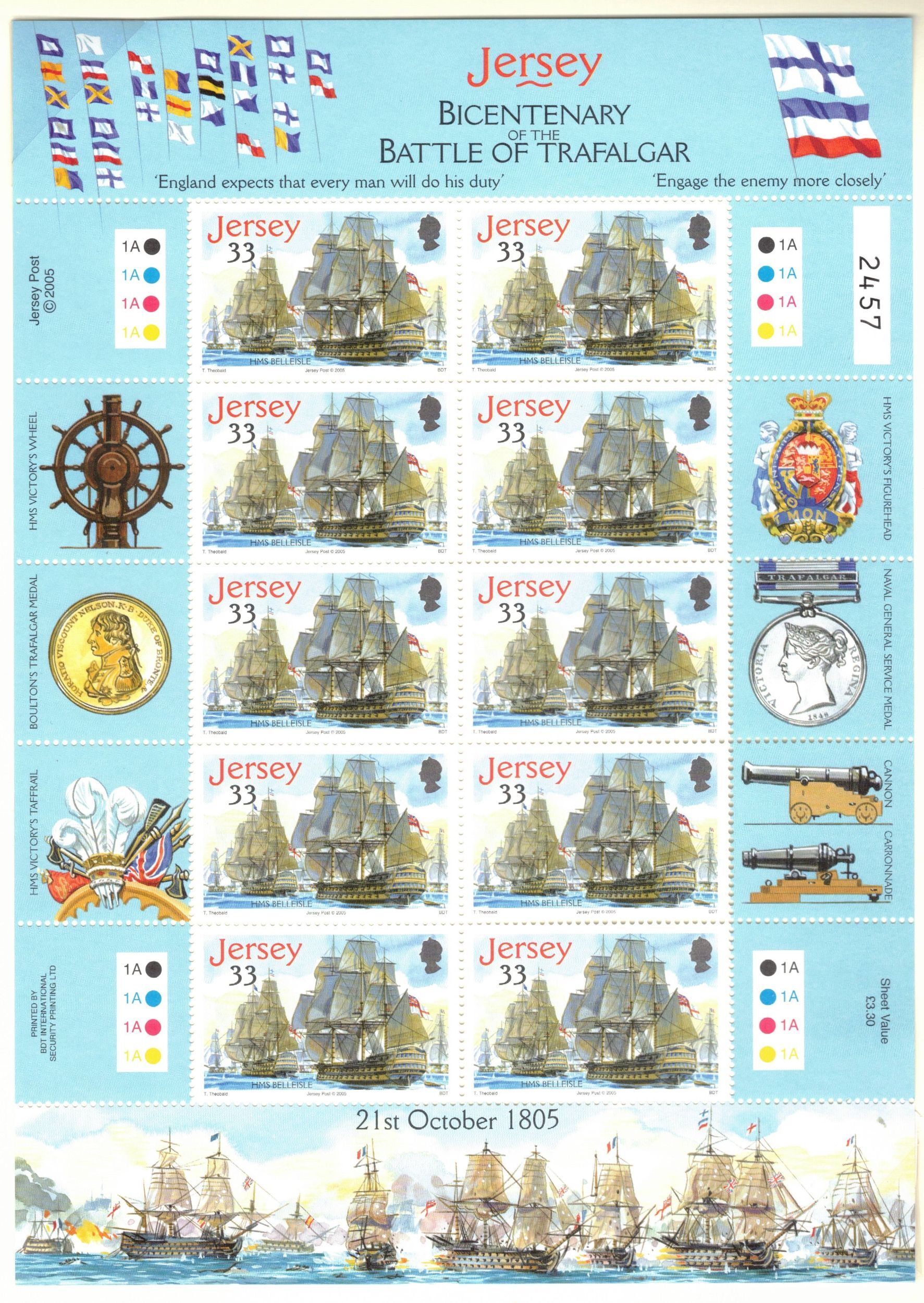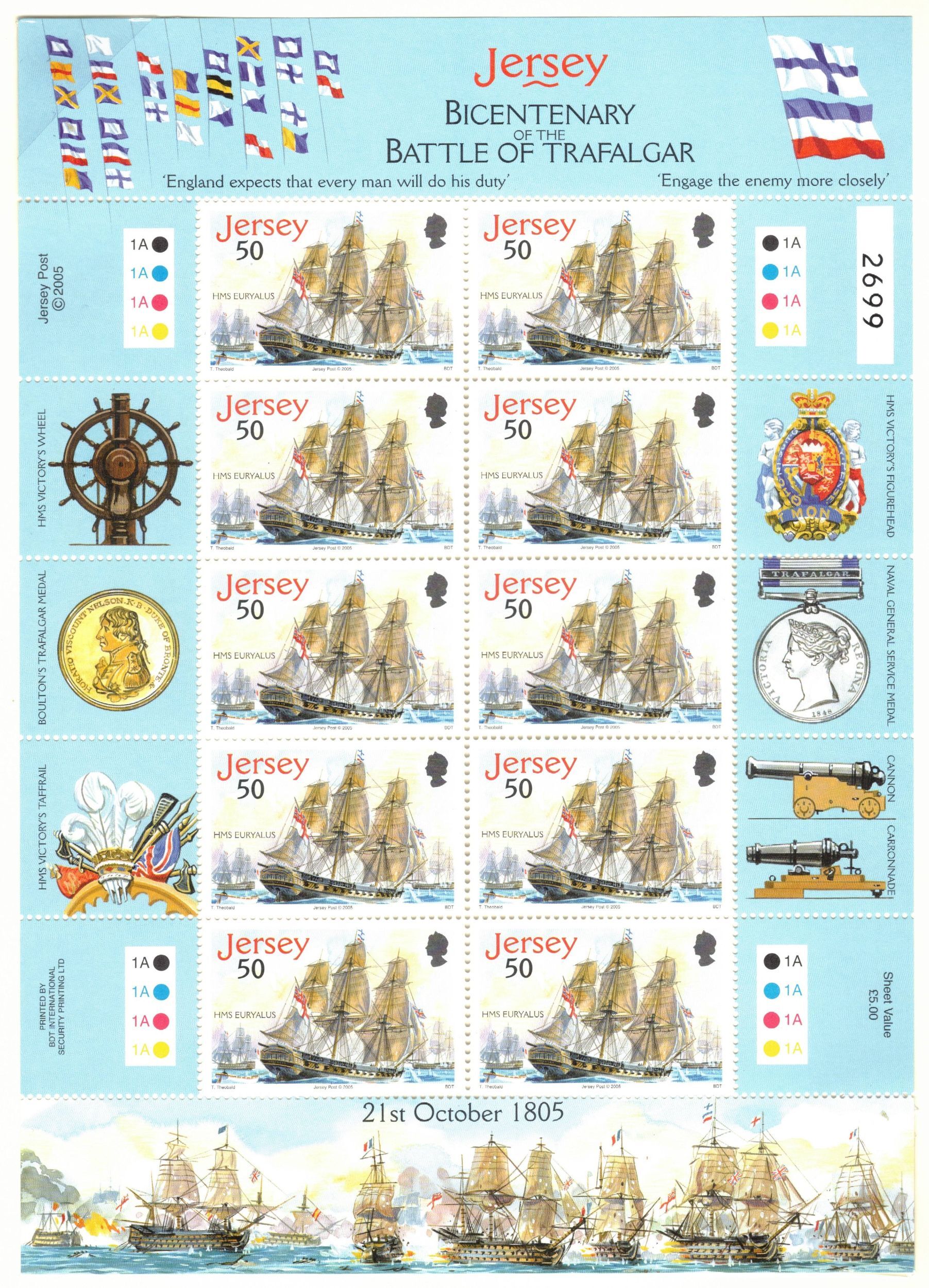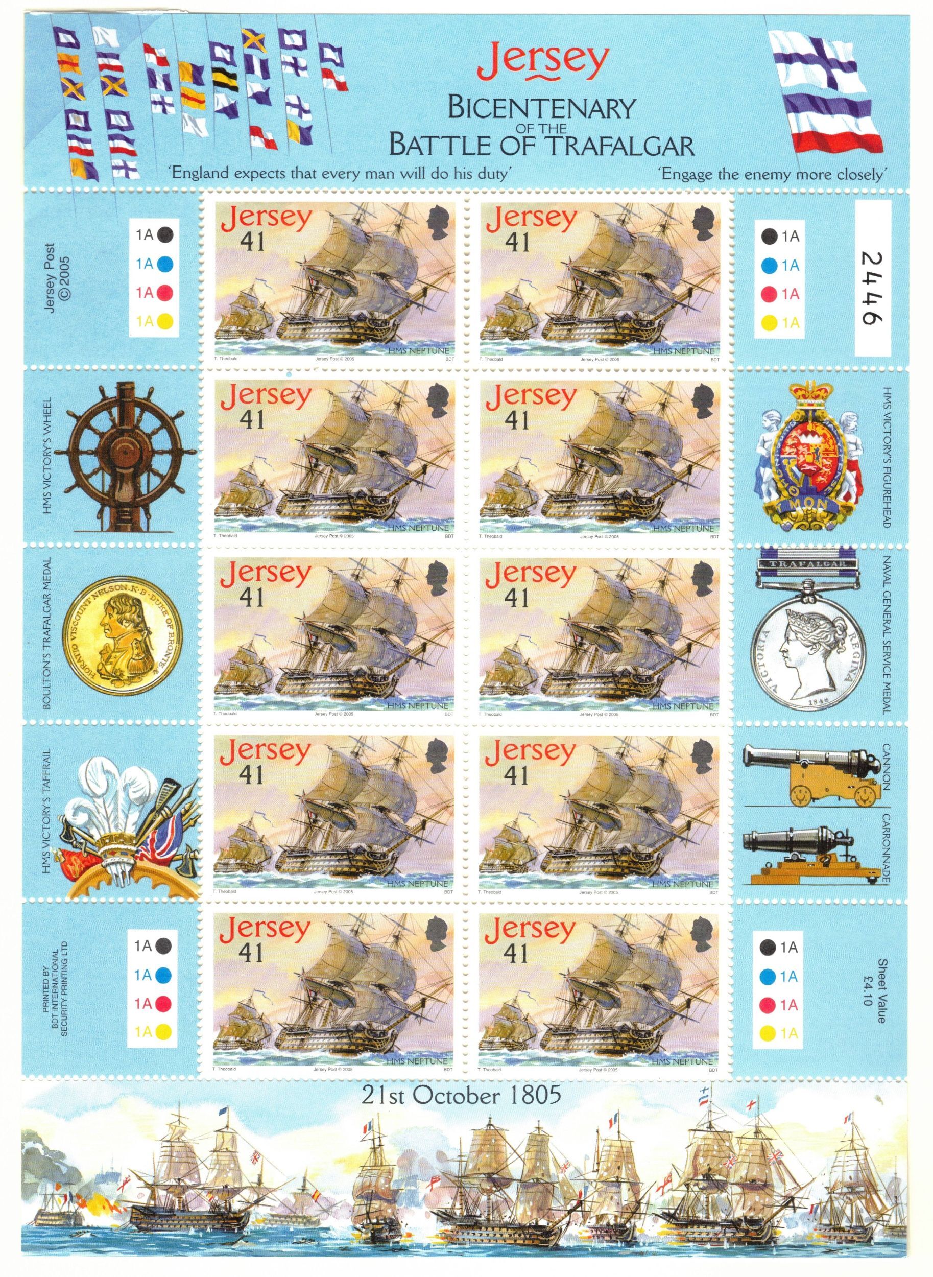 JERSEY 2005 Battle of Trafalgar Sheets; Scott 1190-94; MNH