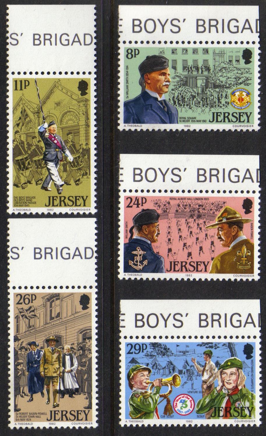 Mint never hinged set from Jersey commemorating scouting issued in 1982.