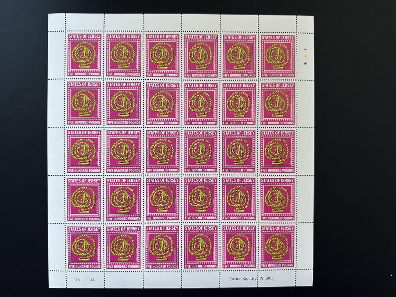 Jersey fiscal duty stamp 500 pounds full sheet 25 stamps incredible