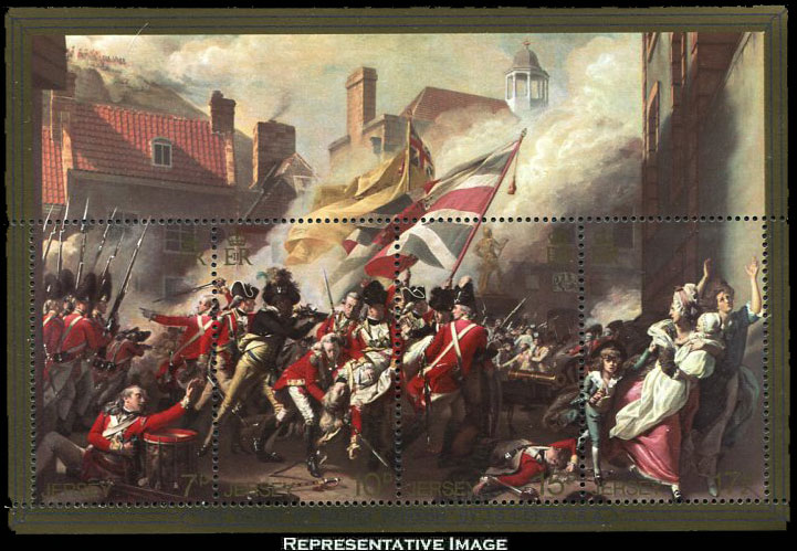 7p, 10p, 15p and 17 1/2p Details From the Death of Major Peirson by John Singleton Copley Souvenir Sheet. Mint never hinged.Seller Information