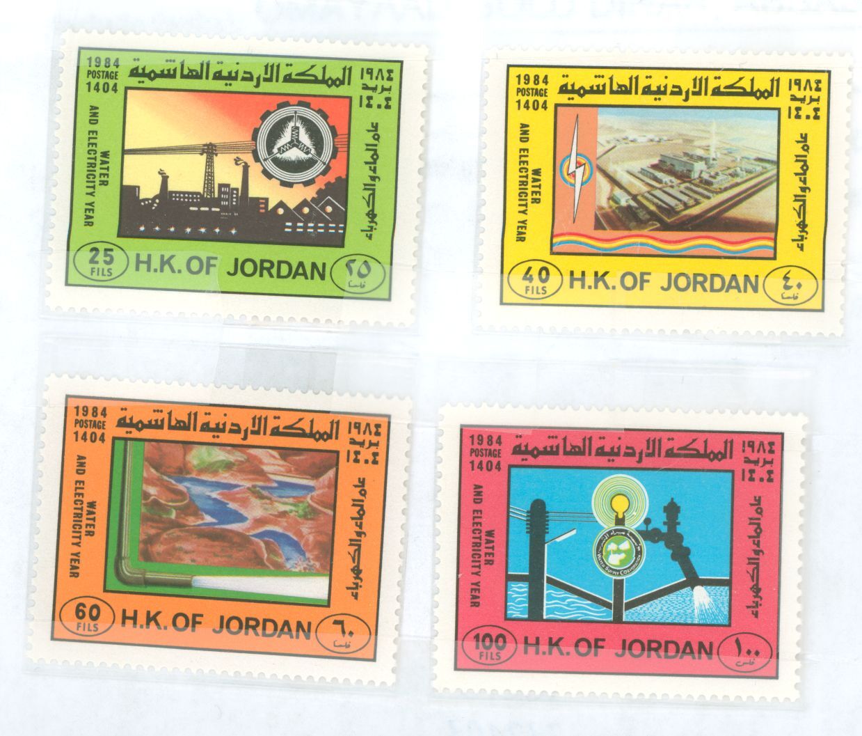 1984 Water and electricity year, four stamps set MNH. Amman Power Station, Hydro-Electric Dam APS Stamp Id: 501936075 APS Seller Id: 779521 Hinge Type: NH