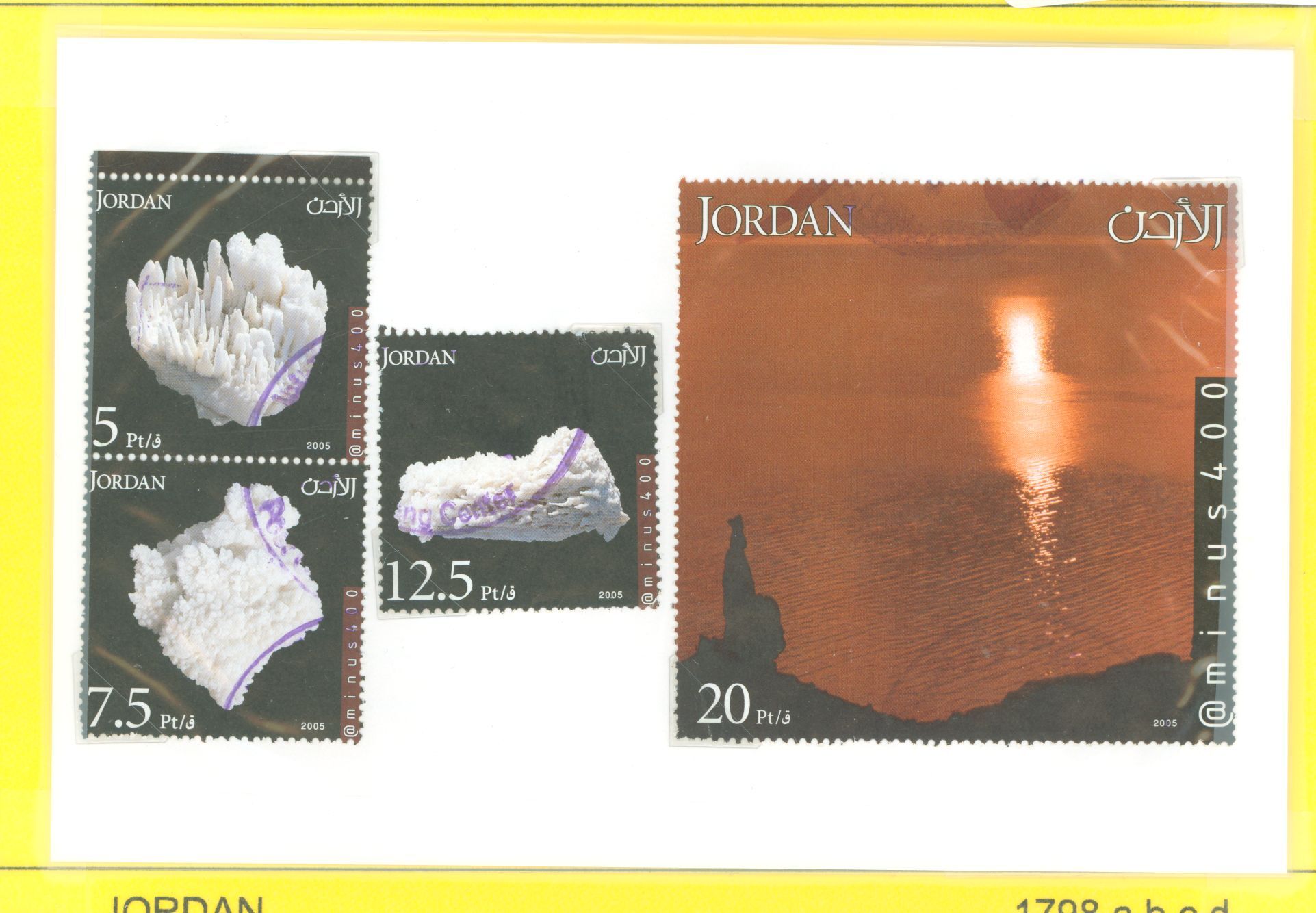 2005 Expo Aichi, Japan, three stamp & souvenir sheet; Dead Sea, Dead Sea salt crystalAPS Stamp Id: 501960333