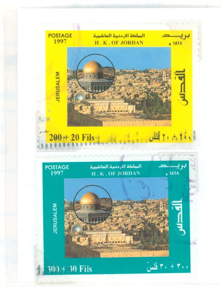 1997 Jerusalem Dome of the Rock; The Old City of Jerusalem surcharge used, two stampsAPS Stamp Id: 501960332