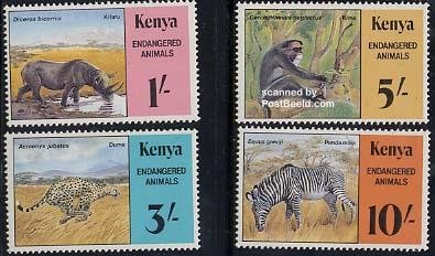 Kenia 1985, Endangered animals 4v, MNH
