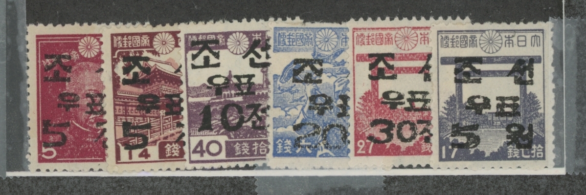 1946 mint Lightly hinged 5ch to 5 Wuan surcharged Japanese singles- set of 6APS Stamp Id: 501978334