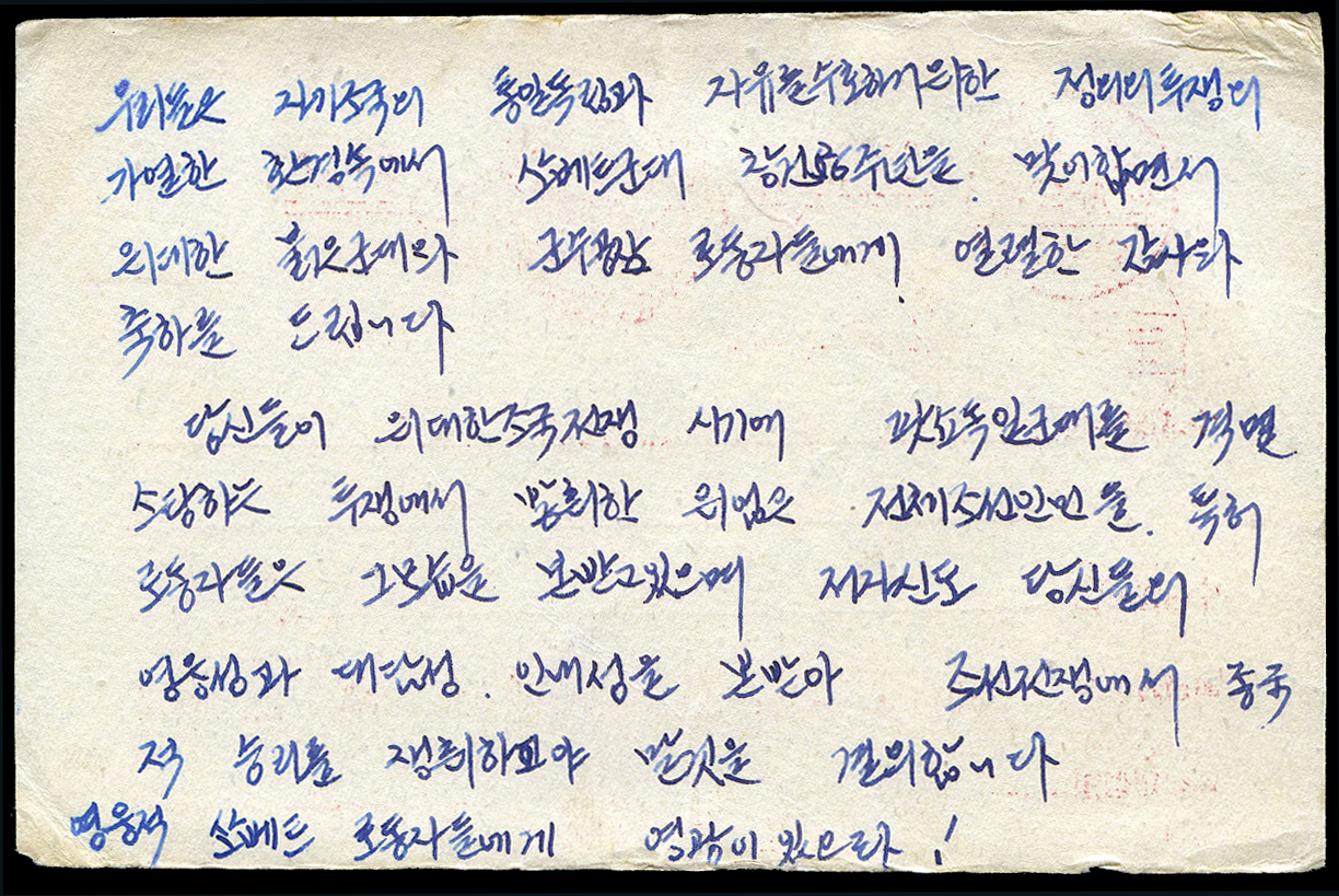 Korea, North, 1953 military card used during the Korean War, rare
