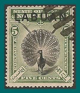 Single stamp showing great Argus pheasant with perf 14.5 - 15 and rubber stamped (not used postally).The stamp is shown in the scan.