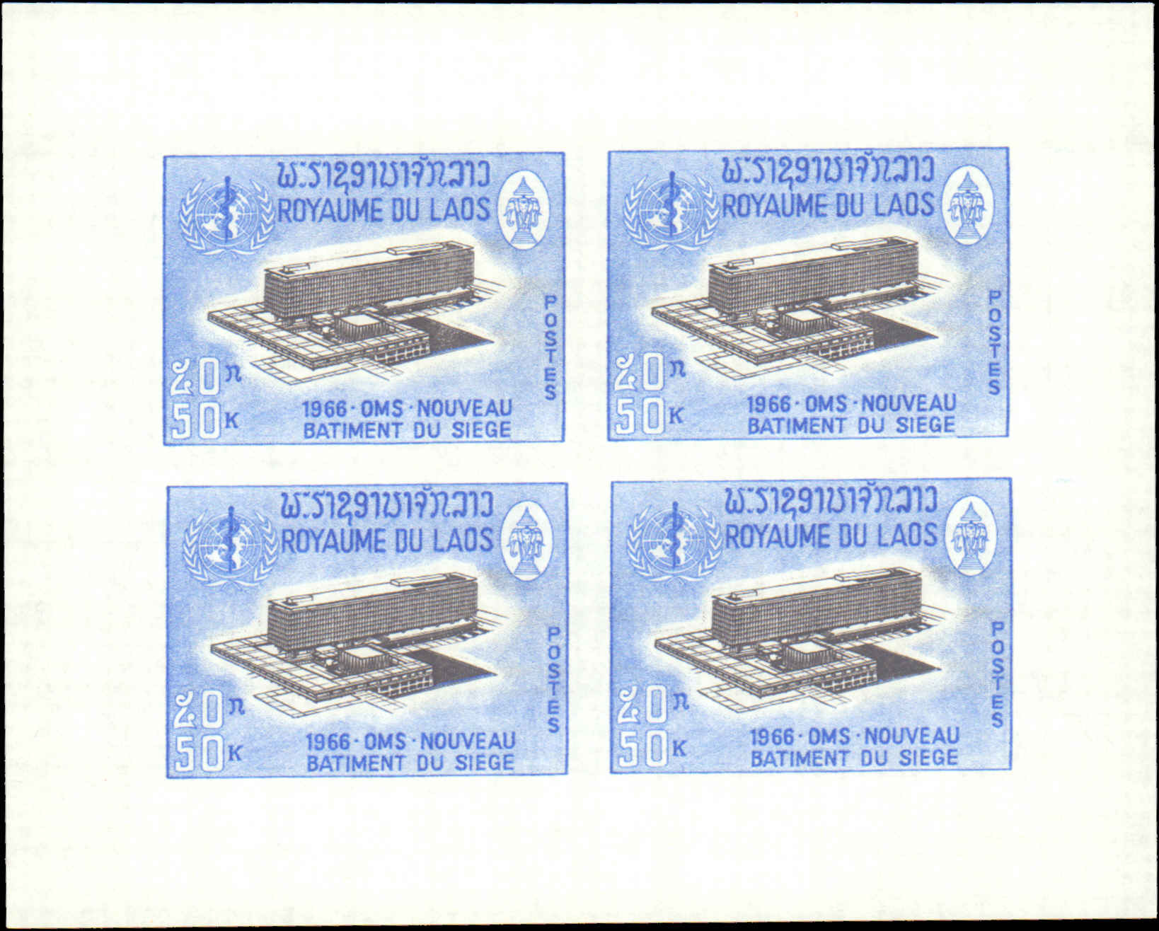 Laos #126-128, Complete Set(3), Not Cataloged, Imperforated, Sheets of 4, 196...