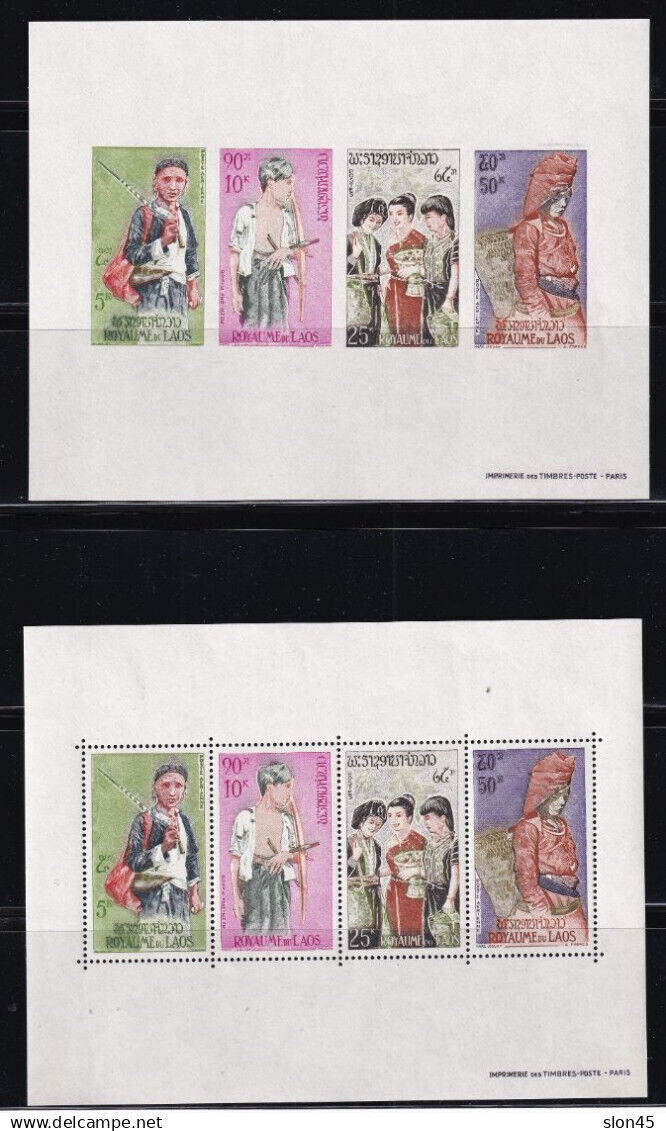 Grade: UngradedLaos 1964 2 Souvenir Sheets Perf imperf MNH 16572 Mi Block 36 A B