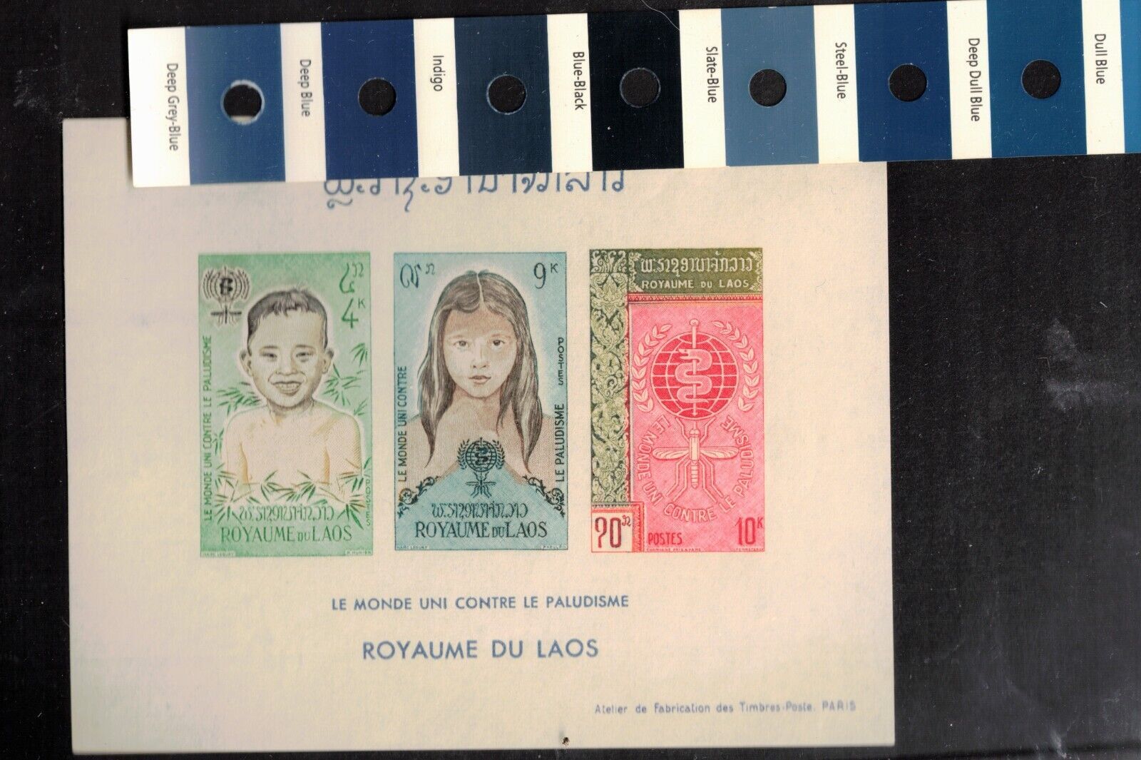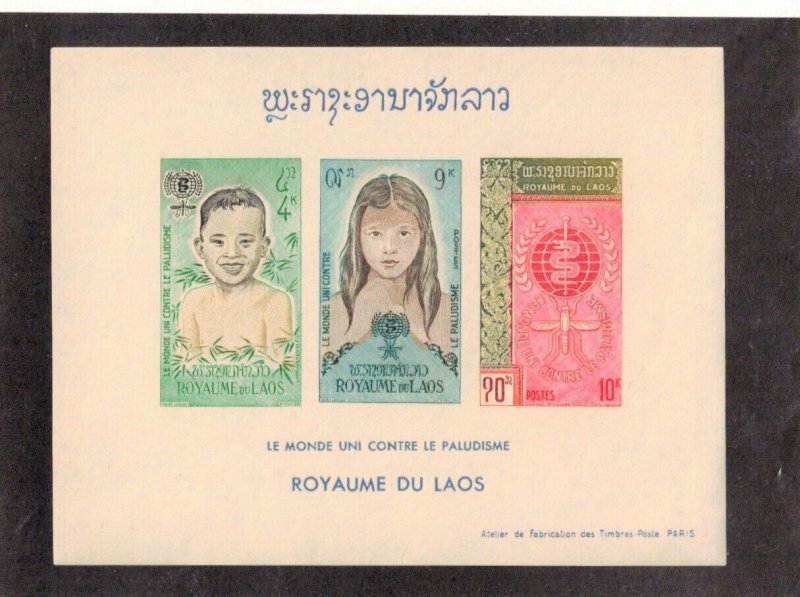 Laos Sc 76a MNH IMPERF S/S issue of 1962 - Off white paper w/ dark Inscription