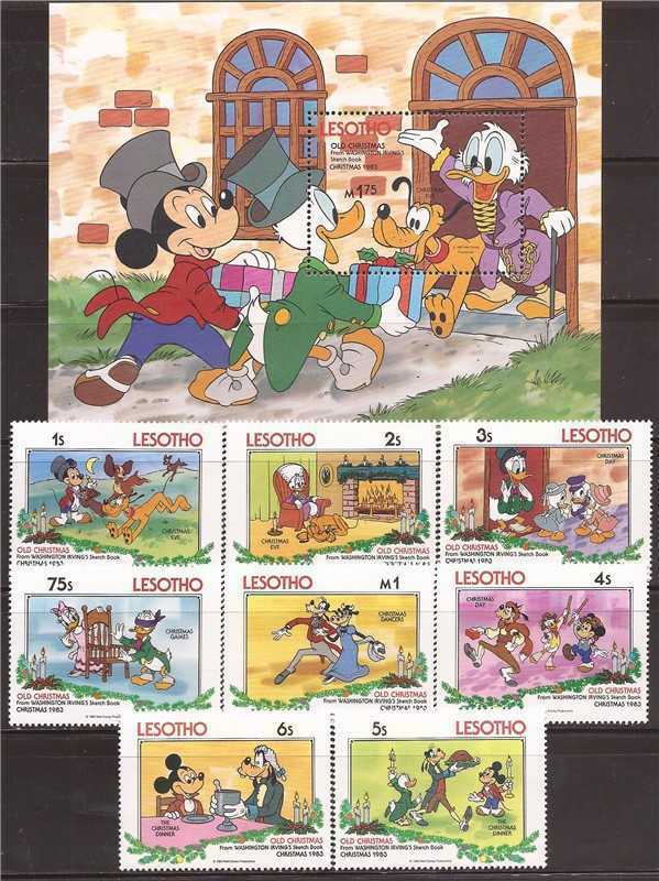 Lesotho - 1983 disney old christmas - 8 stamp set + souvenir sheet #412-20