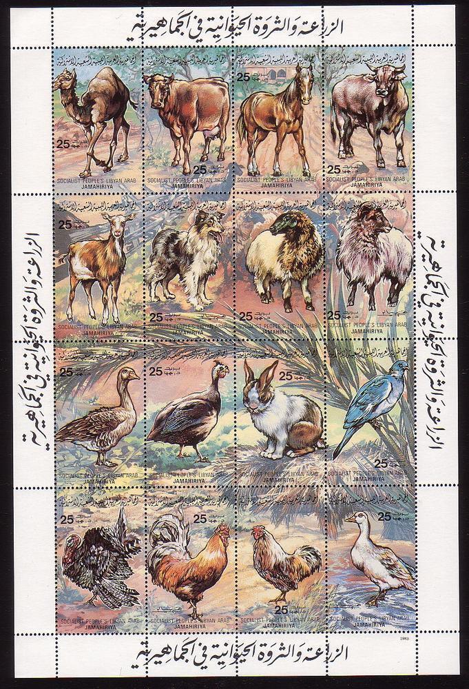 Libya, Scott #1083, 1983 Farm Animals Miniature Sheet issue in Mint Never Hinged condition.Scott 2026 Catalogue Value $10.00