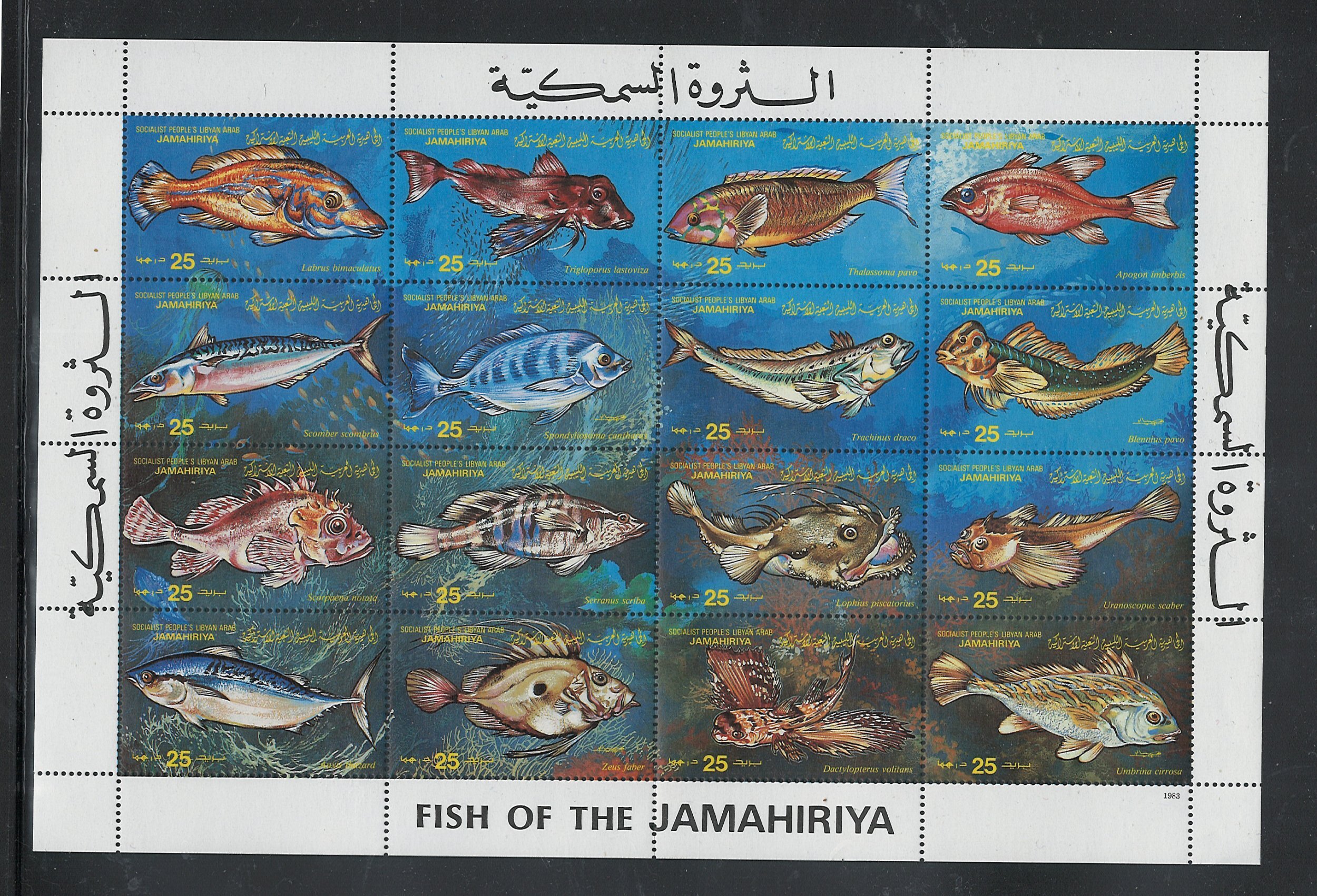 LIBYA 1983 "FISH" #1107 FULL SHEET, MNH.