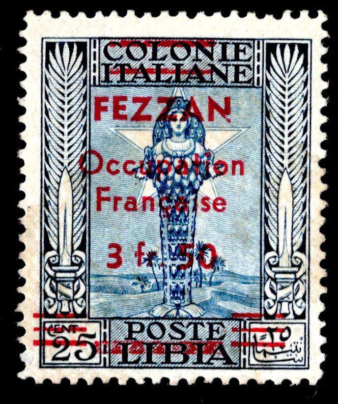 Libya 25c Diana of Ephesus Overprinted Fezzan Occupation Francaise 3fr 50 Signed. Mint never hinged.Seller Information