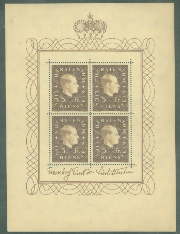 1939 sheet of 4 stamps; Prince Franz Joseph II APS Stamp Id: 501821807 APS Seller Id: 786818 Hinge Type: Not Specified