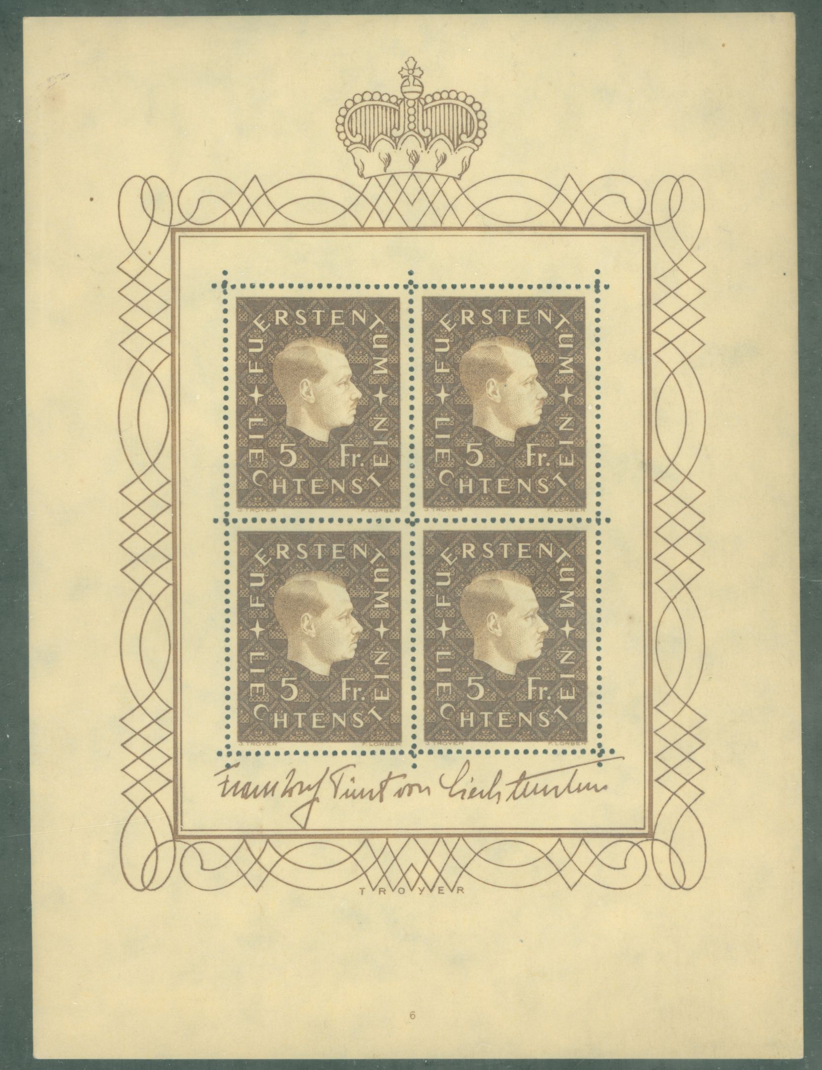 1939 sheet of 4 stamps; Prince Franz Joseph IIAPS Stamp Id: 501821807