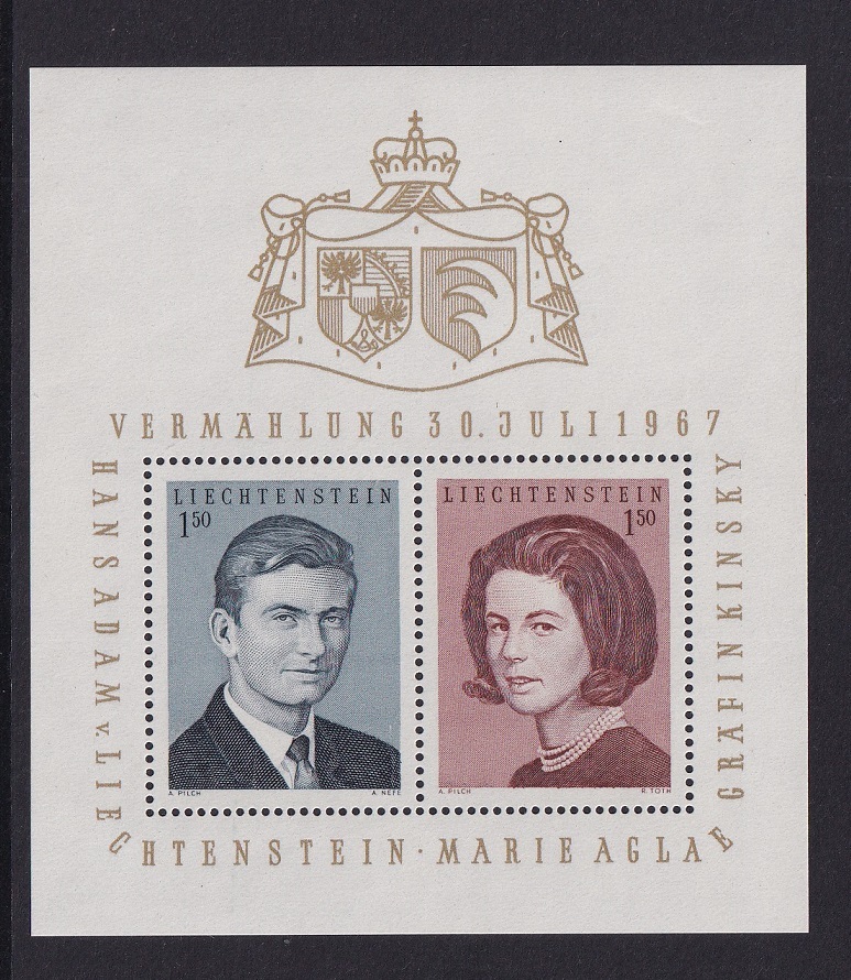 Liechtenstein #424 MNH 1967 sheet royal wedding