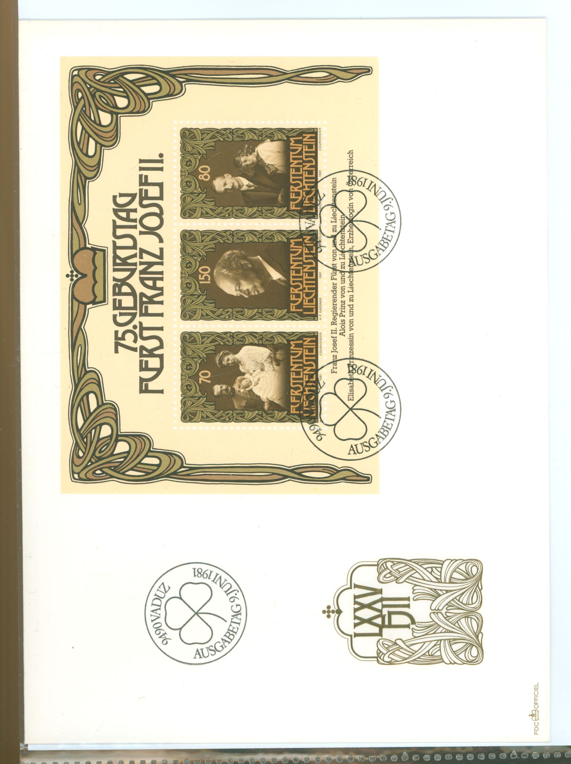 1981 Prince Franz Joseph II 75th Birthday S/S of three stamps APS Stamp Id: 501673218 APS Seller Id: 569655 Hinge Type: Not Specified