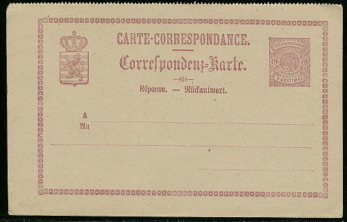 Luxembourg 1874 Mint post card 6 Centimo reply