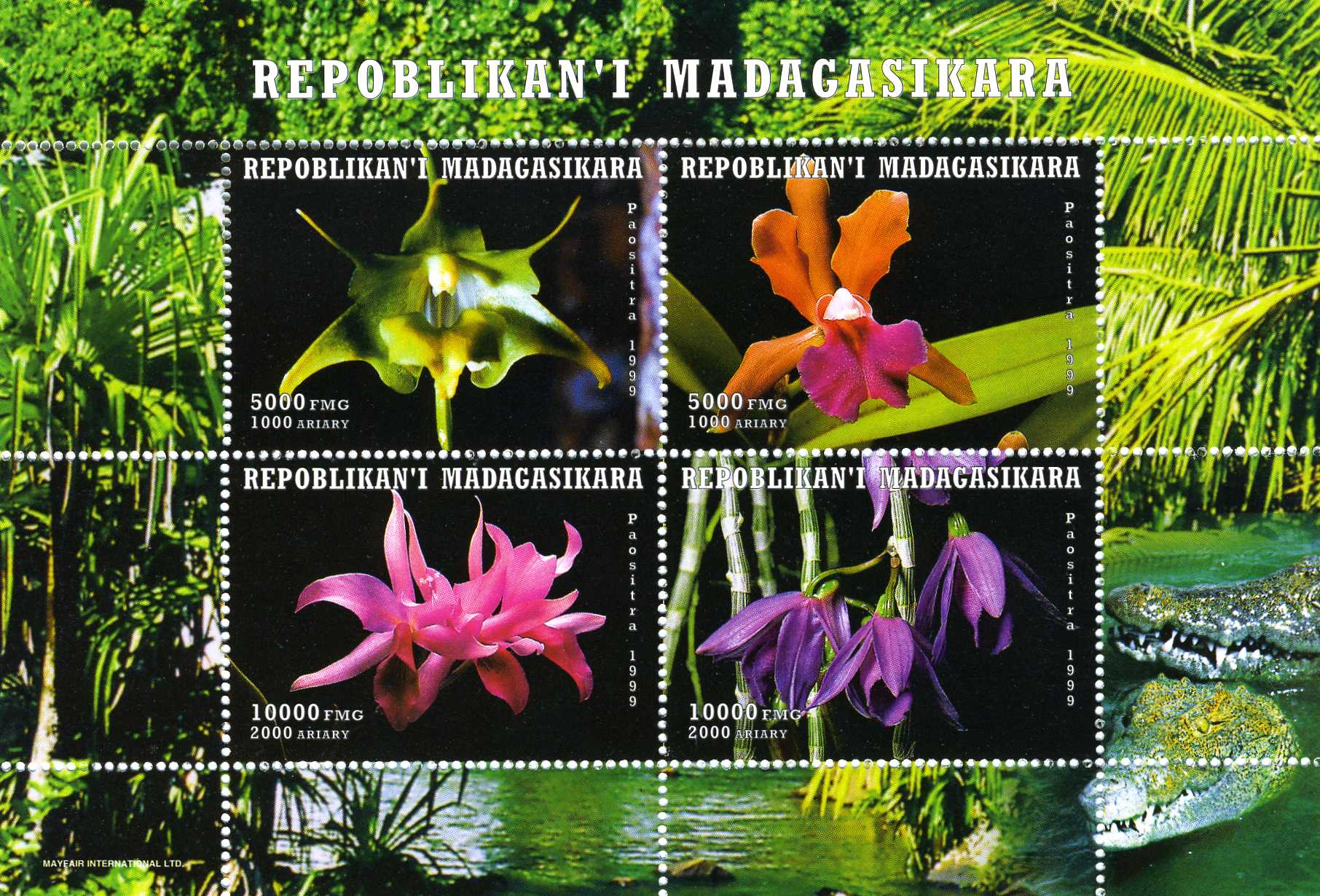 Madagascar 15.06.1999 - Orchids "Lagartos - Forest" Sheet of 4 values Perforated MNH VF ConditionSeller Information