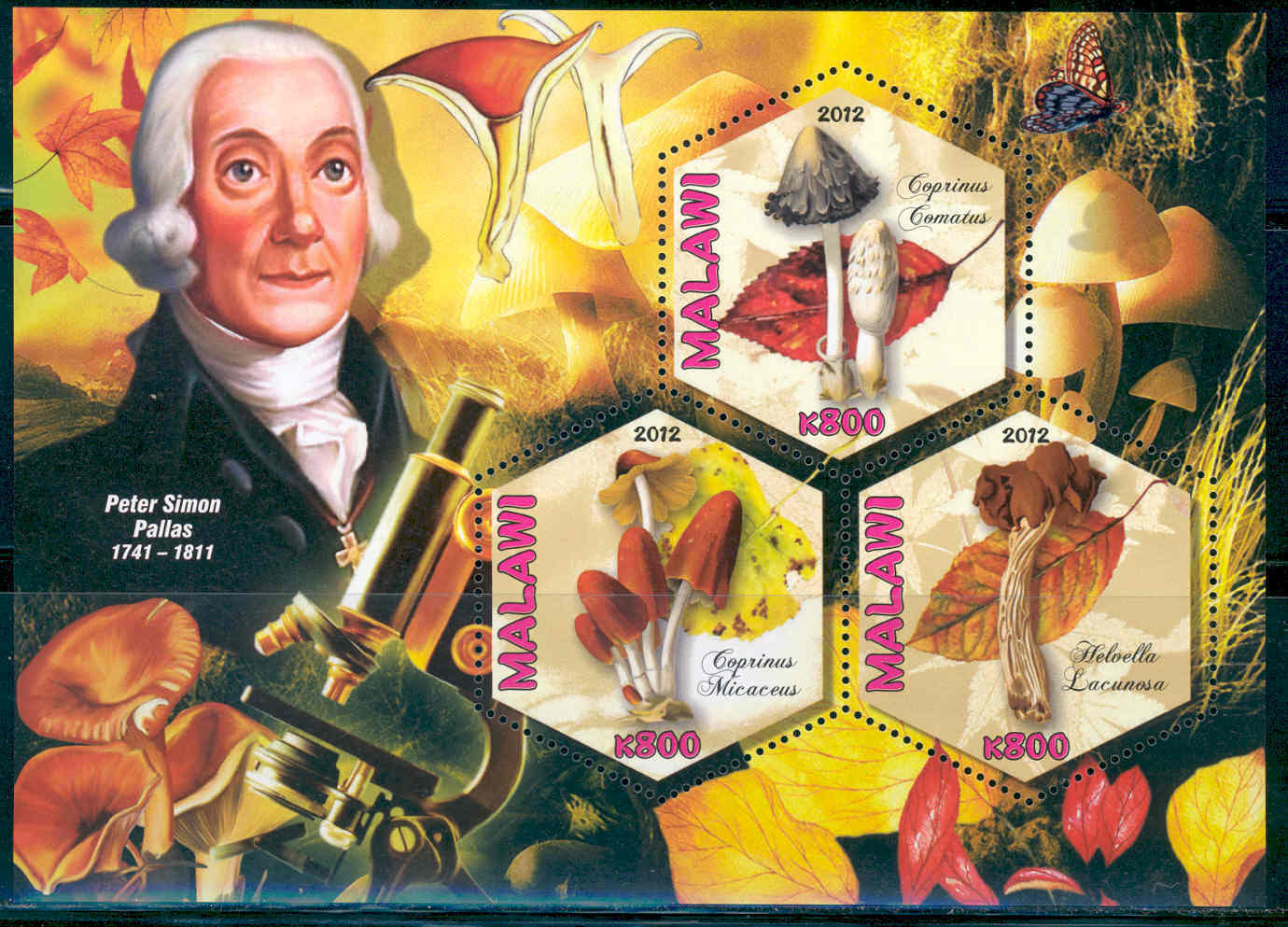 Malawi 2012: "MUSHROOMS - PETER SIMON PALLAS - PART V" Sheetlet of three