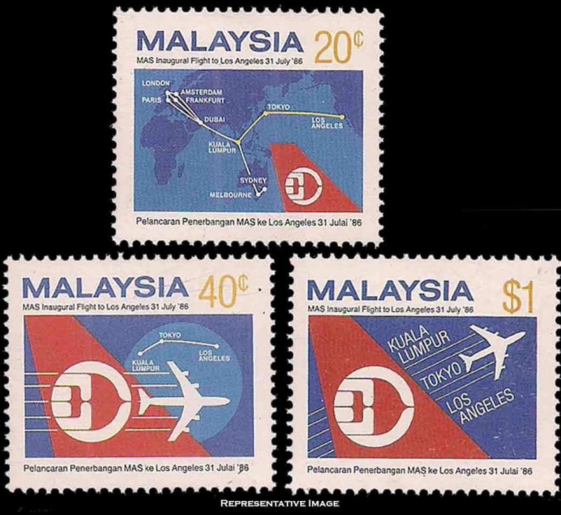 20c, 40c and $1.00 Malaysian Airlines Inaugural Flight to Los Angeles. Mint never hinged.Seller Information