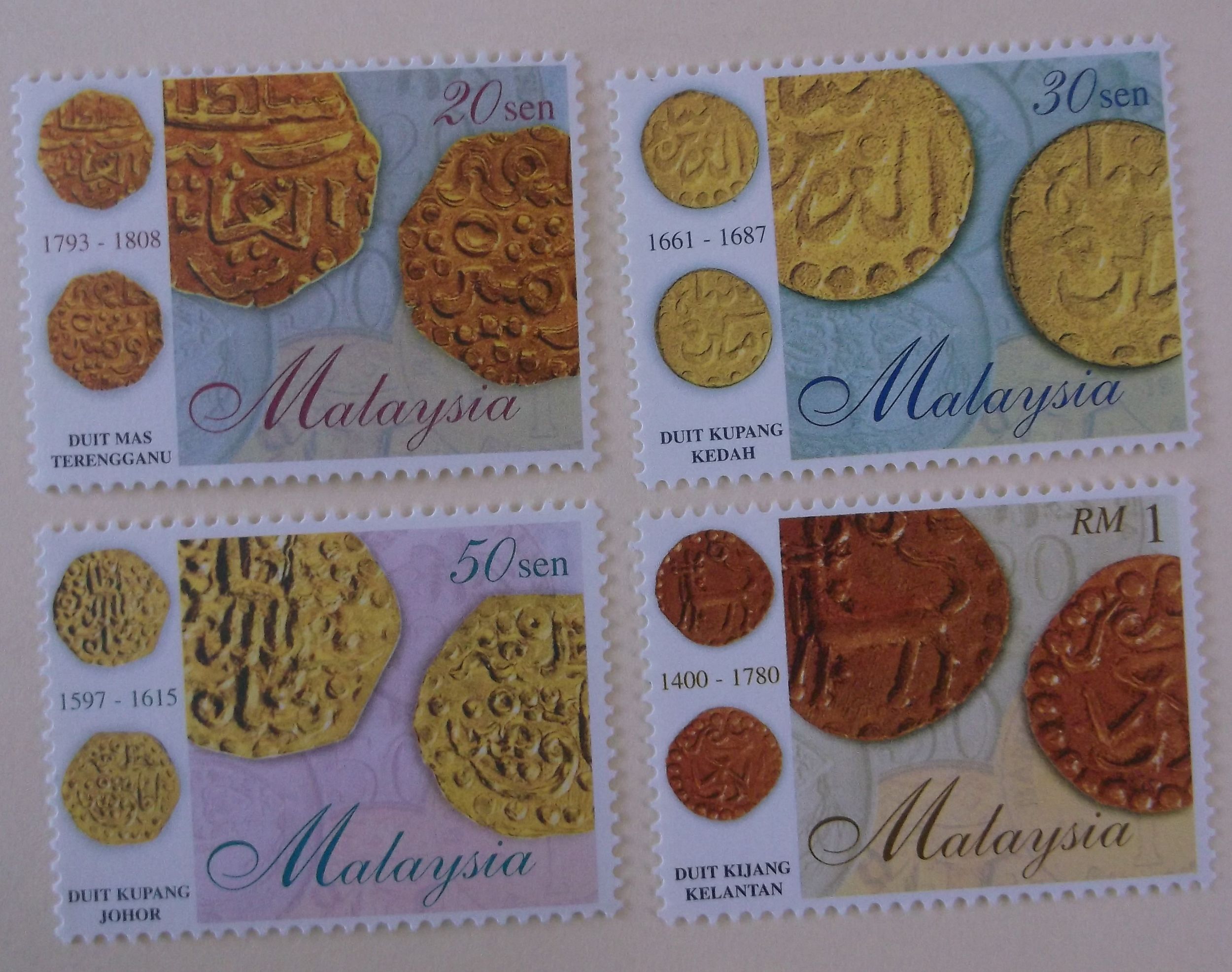 Malaysia 655-8 MNH Coin on Stamp Topical Cat $1.85 Full Set