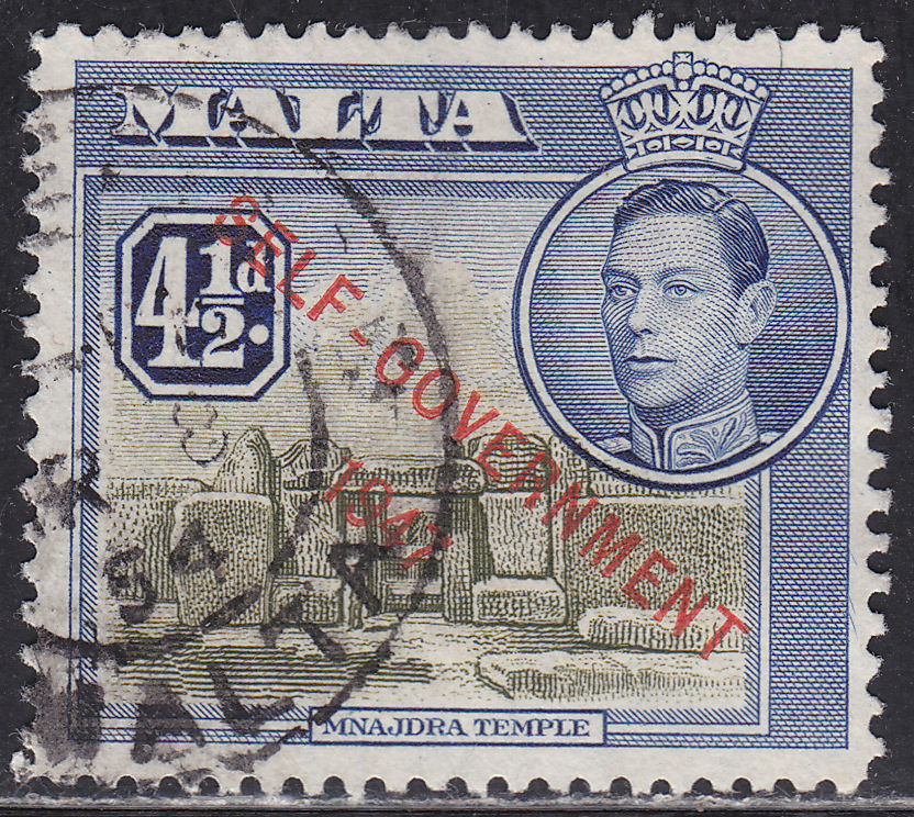 50019081 Europe - Malta Mnaidra Temple Overprint: Self-Government 1947 Scott: 240 Issue: 1953 Hinged Used We Thank You For Choosing LickinGoodStamps!