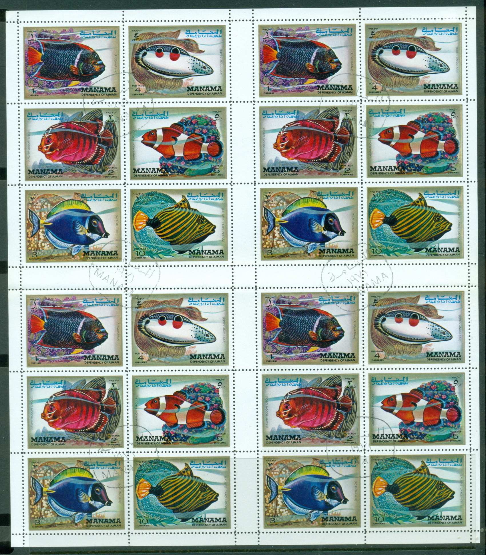 Manama 1971 Mi#777-782 Marine Life, Tropical Fish sheet CTO (XL shipping)