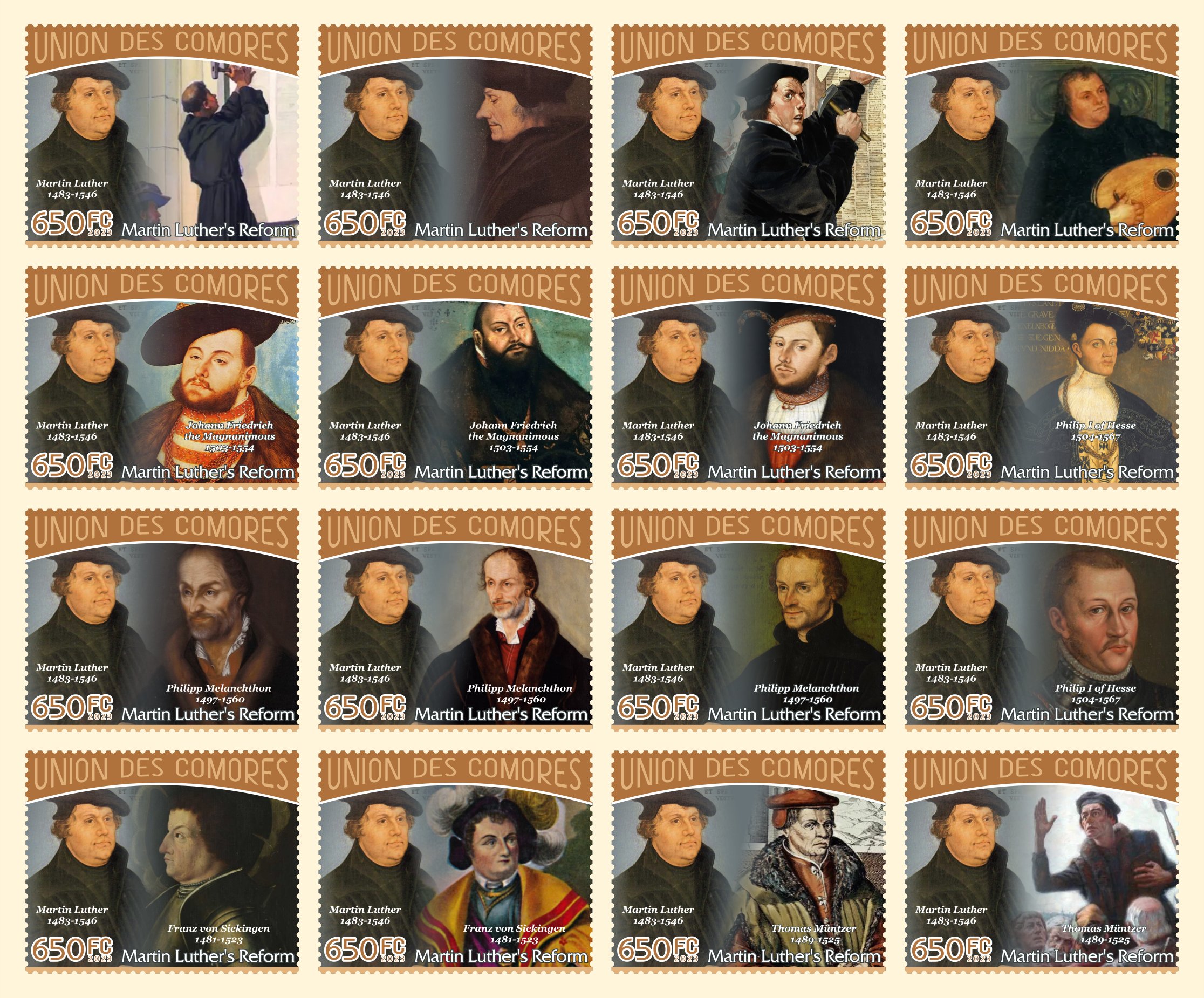 Martin Luther's reform 2023 year 16 stamps perforated NEW