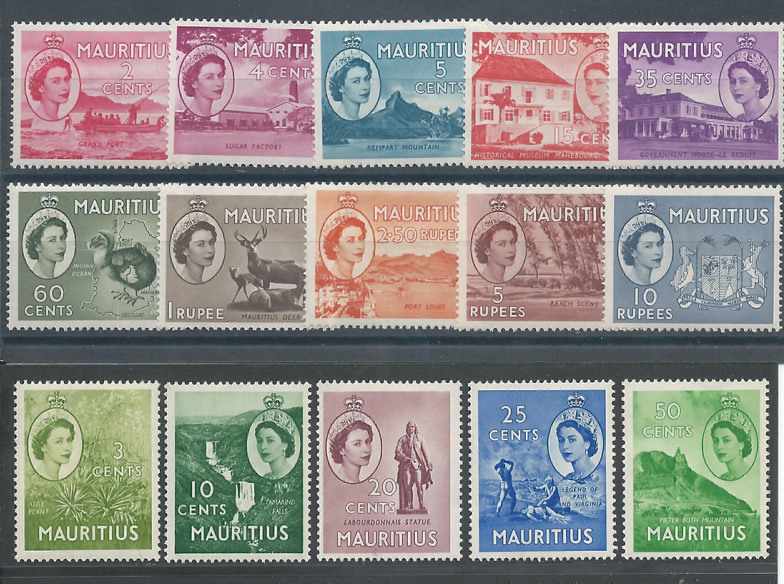 Mauritius 251-65 LH F-VF cplt. Queen Elizabeth set with a SCV $ 69.45Seller Information
