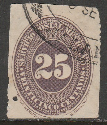 Mexico 183, 25¢ large numeral, used. F-vf._about centering in this issue.- due to the rudimentary process used for perforation, stamps of this issue are difficult to obtain in vf-xf condition.