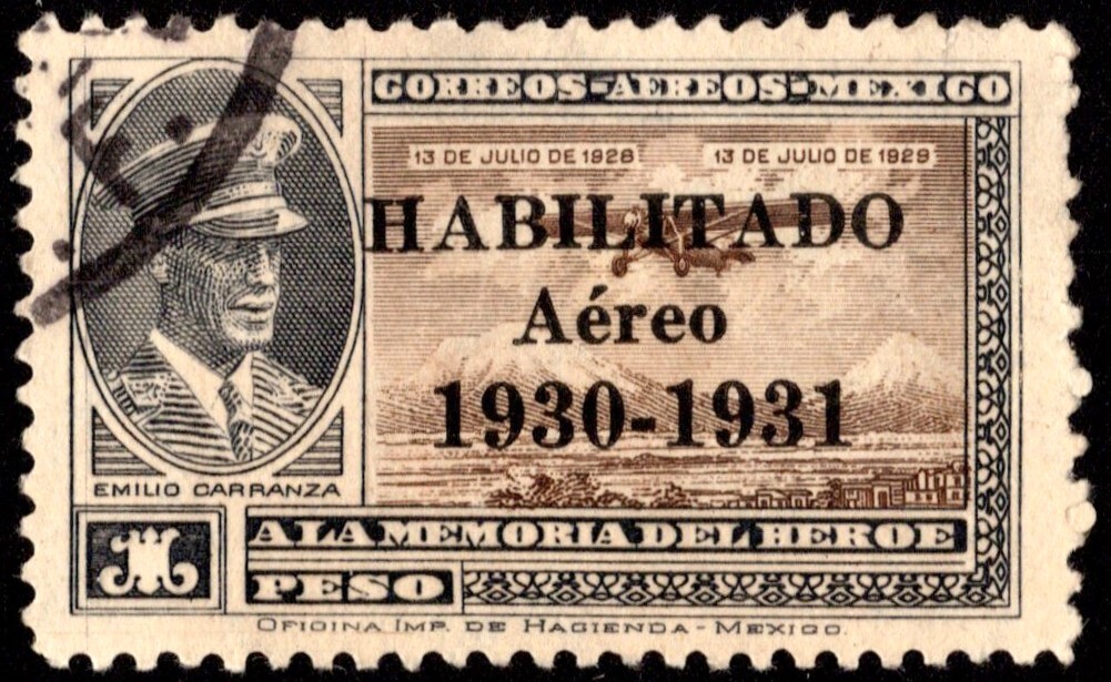 1P Capt. Emilio Carranza and His Airplane Mexico Excelsior Overprinted Habilitado Aereo 1930-1931. Used.Seller Information