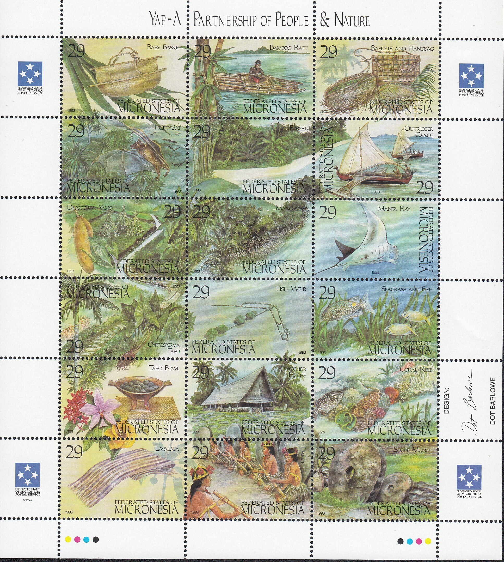 Micronesia, Scott #186, 1993 Yap Culture Miniature Sheet issue in Mint Never Hinged condition.Scott 2026 Catalogue Value $12.50