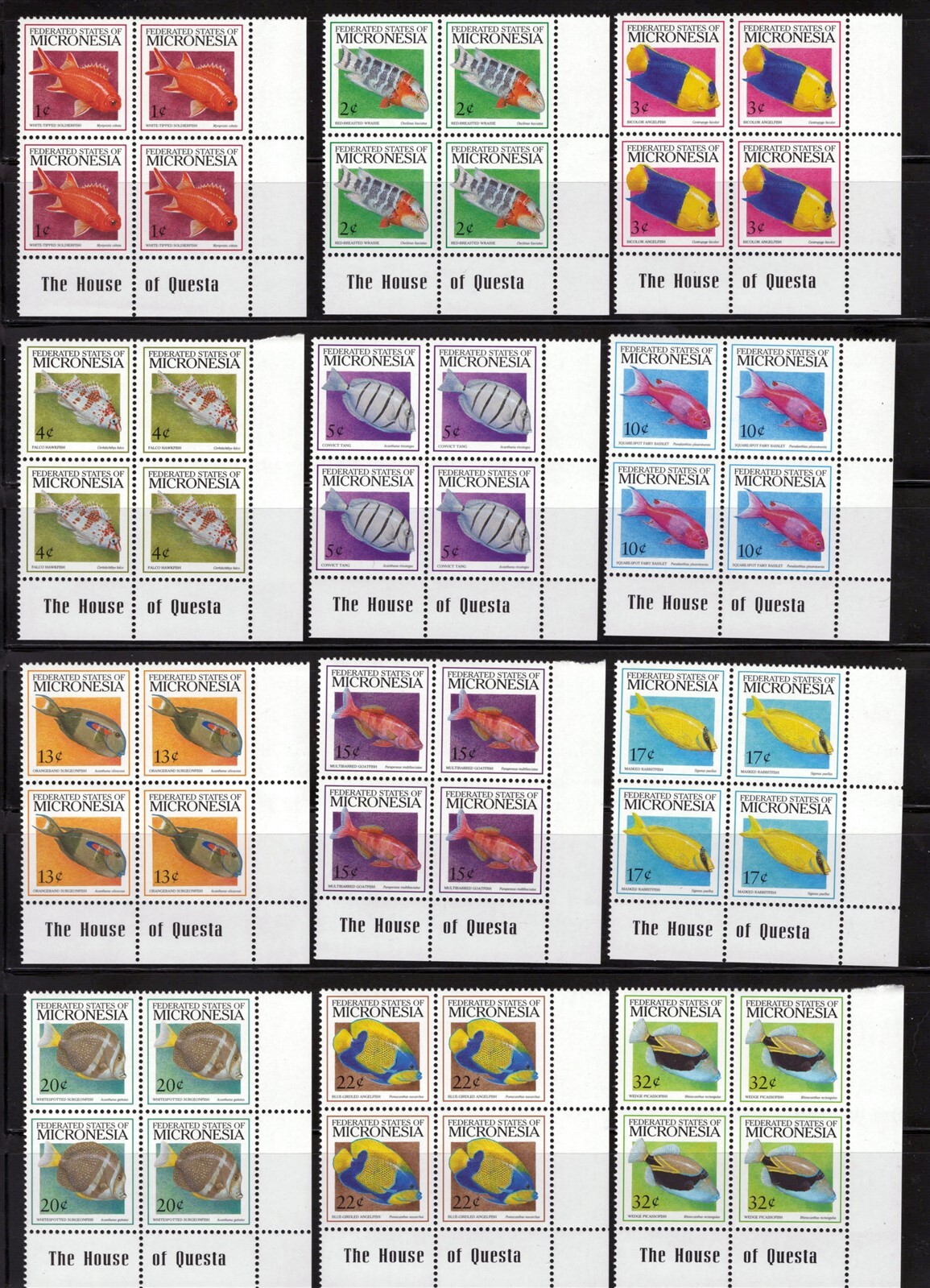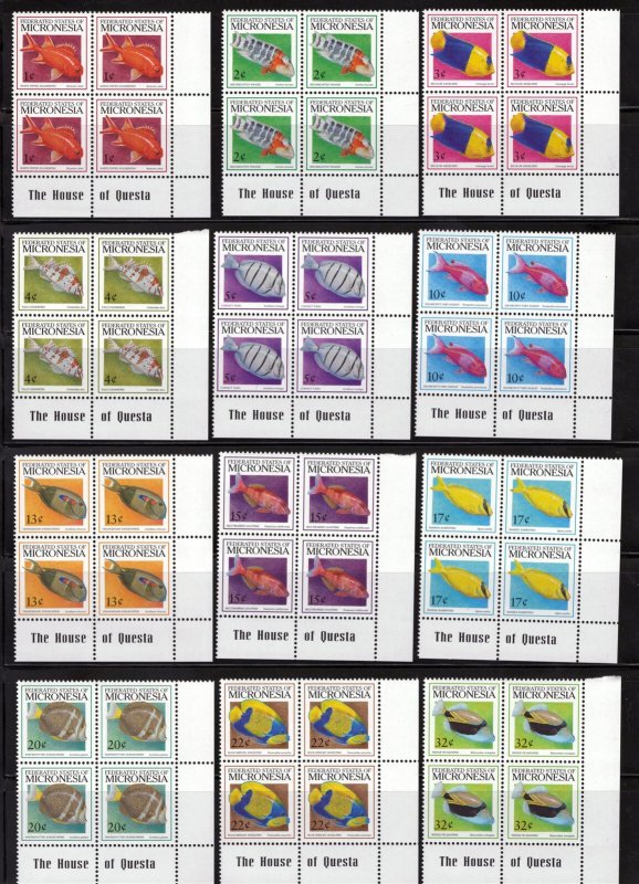 Micronesia 301-319A, 328-332 MNH Fish Definitive Blocks ZAYIX 0825L1763