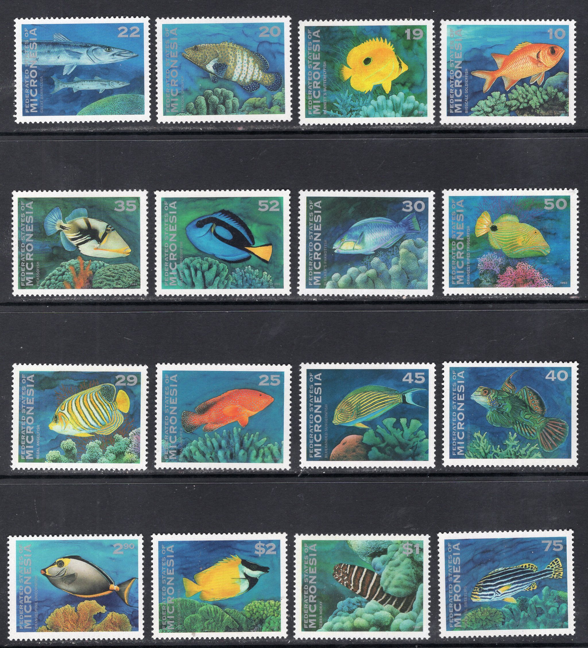 - Micronesia Scott 156-167. Complete set. Mint. Never hinged. 16 values.