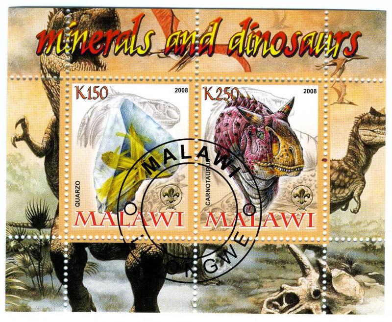 Malawi 2008 minerals and dinosaurs sheet 2 values cto fine used perforated