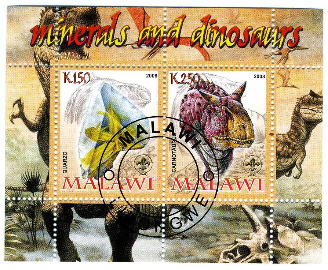 Malawi 2008 minerals and dinosaurs sheet 2 values cto fine used perforatedSeller Information