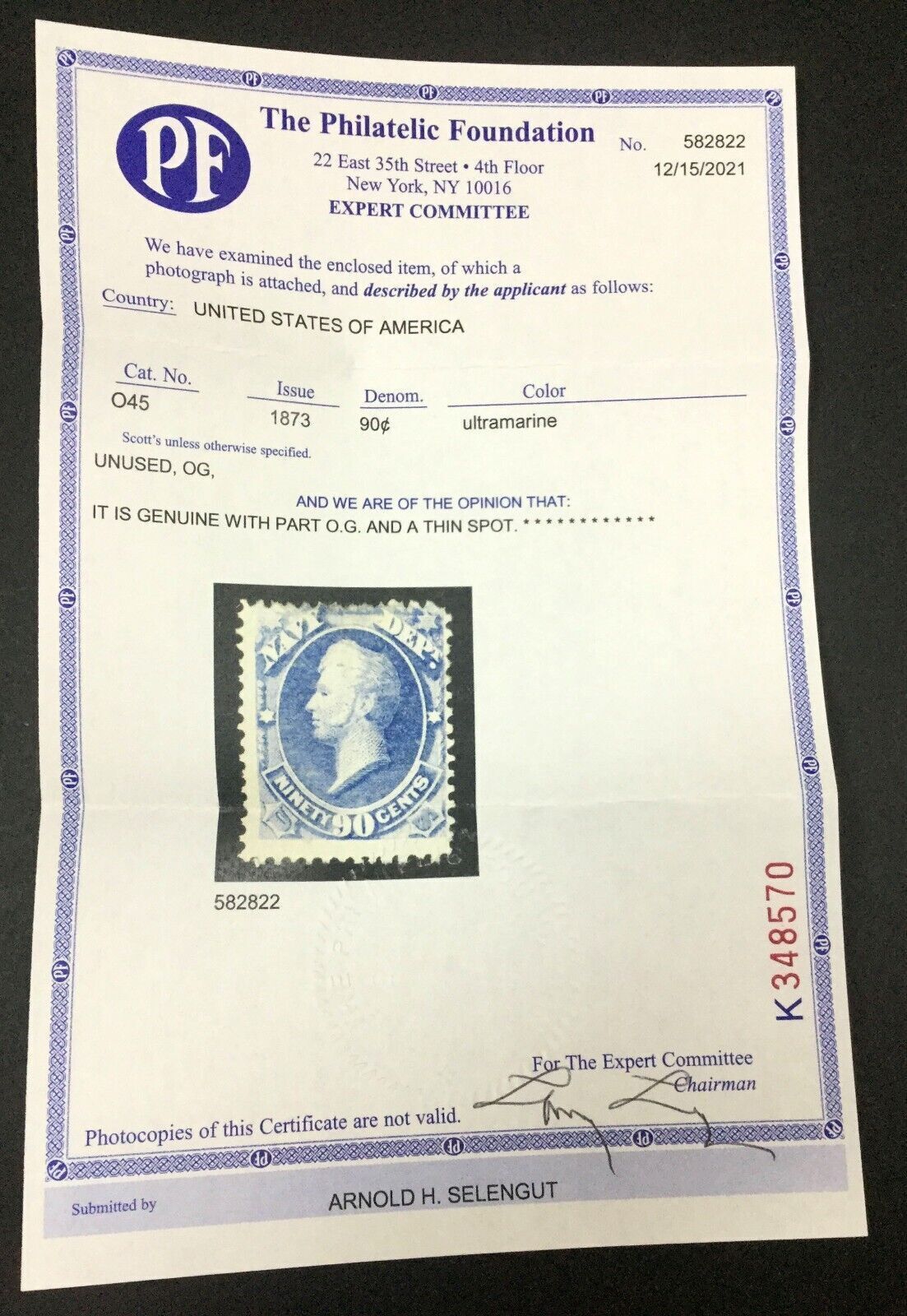 US STAMPS #O45 OFFICIAL MINT OG H **PF CERT** $1,050 LOT #82254