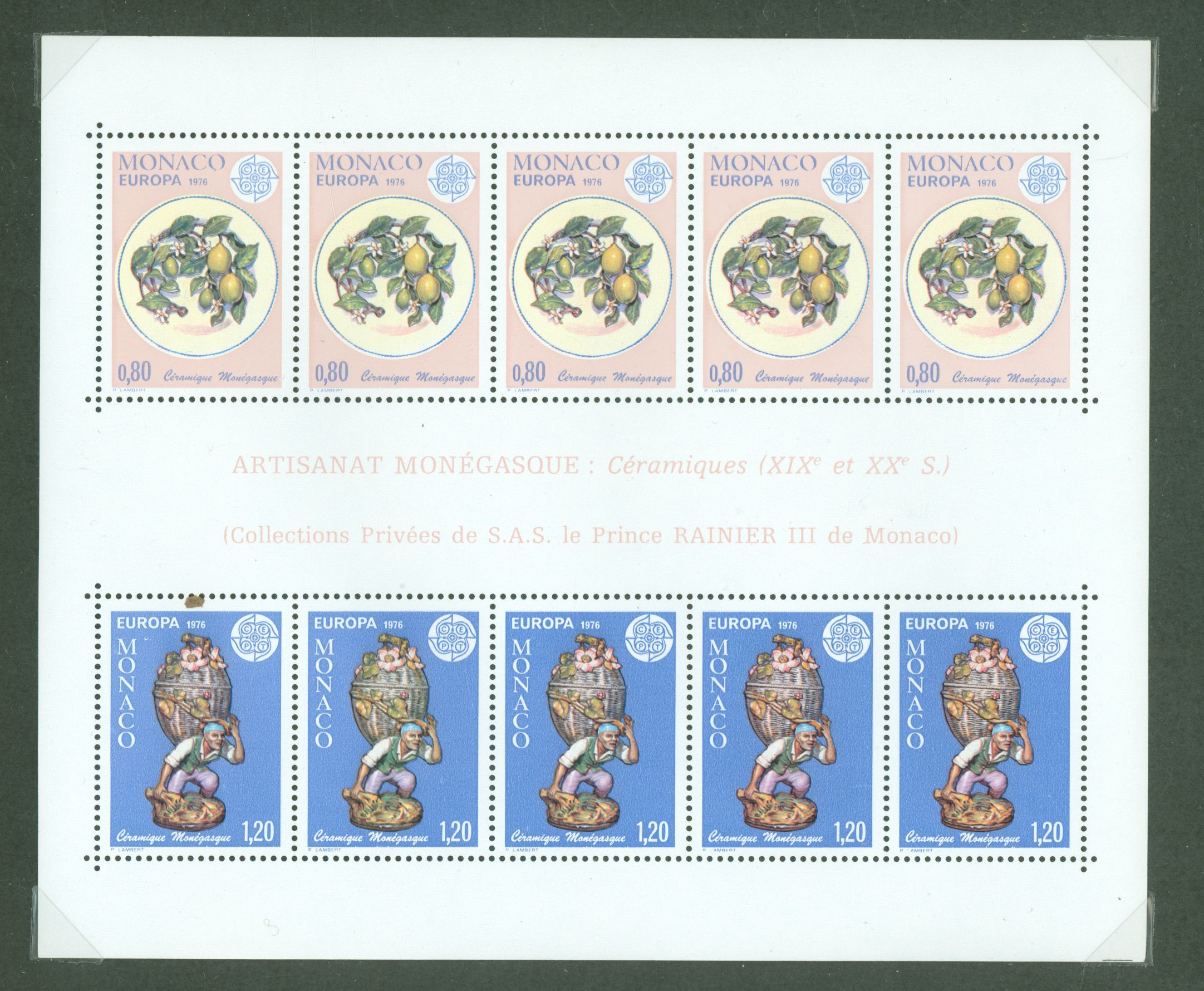 1976 plate with lemon branch the peddler-19th century figurine and CEPT emblem APS Stamp Id: 502065619 APS Seller Id: 709345 Hinge Type: NH