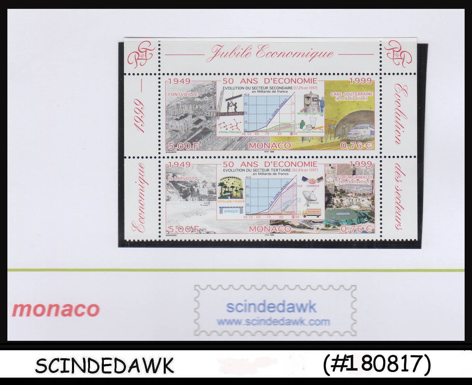 MONACO - 1999 Economic development under Prince Rainier III - SE-TENANTX2 MNHSeller Information