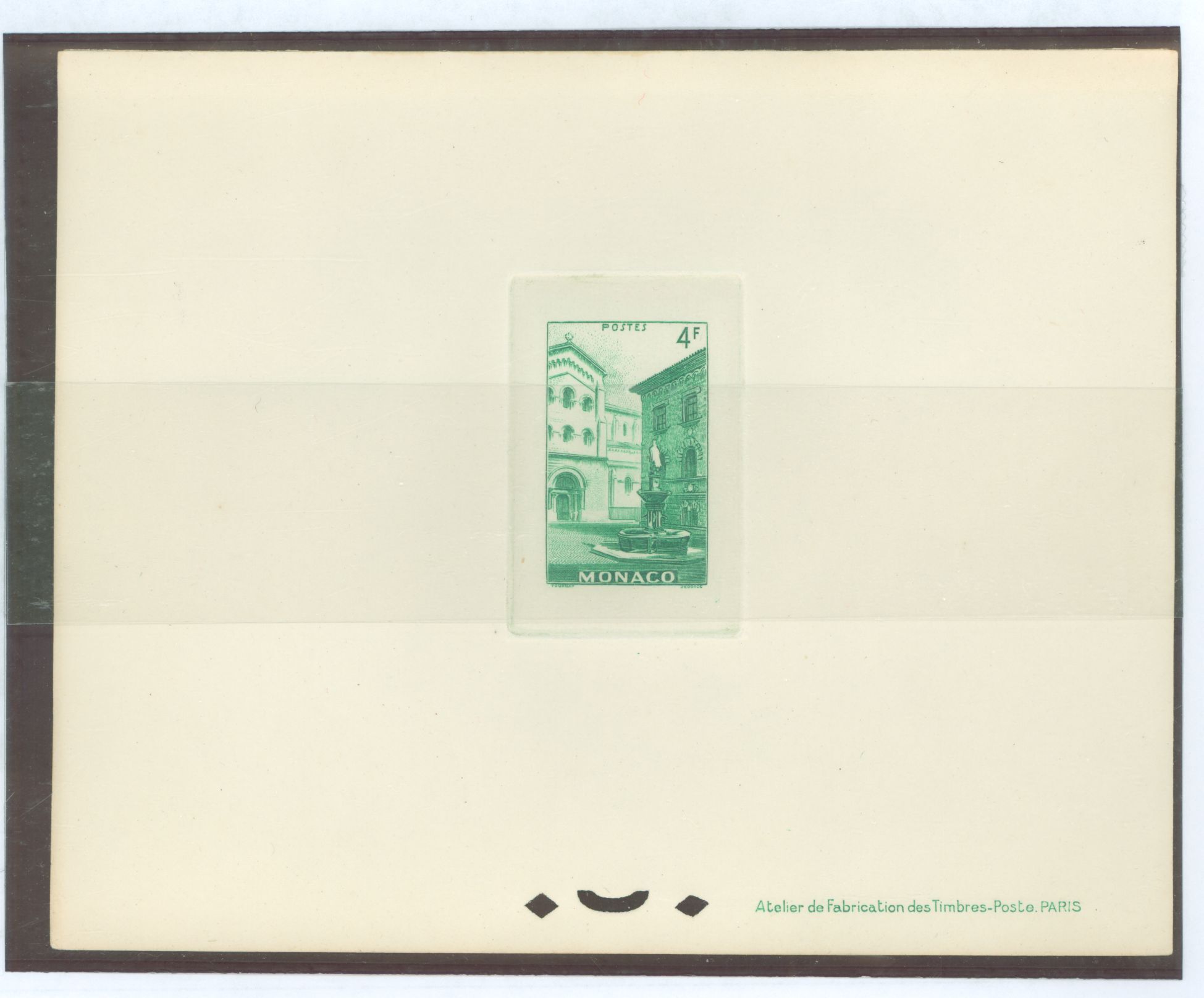 1949 4fr scenic type deluxe proof large sunken die proof MNH APS Stamp Id: 502062205 APS Seller Id: 667136 Hinge Type: NH
