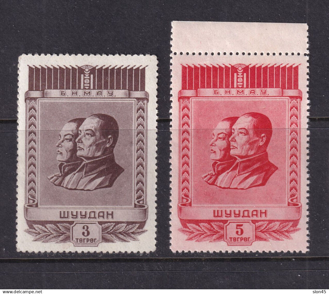 Grade: Ungraded Mongolia 1953 3t 5t Key stamps Choibalsan amp Sukhe Bator MNH 16424 Sc 114 115 Mi 98 99 Blekhman 103 Issued 51000 104 issued 10000